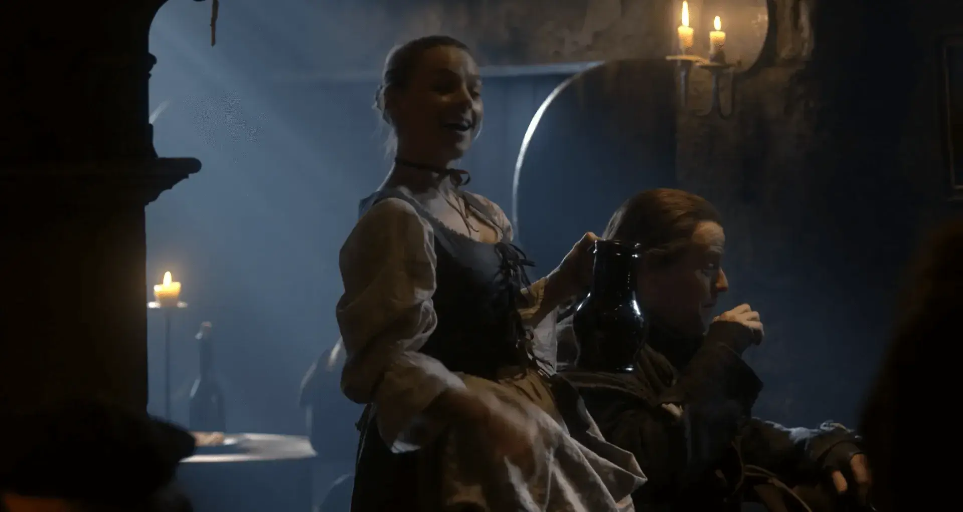 Незнакомец в номере нападает на Клэр, вынуждая её защищаться. Героиня толкает нападавшего, в результате чего мужчина падает и ударяется головой о каменный пол. Девушка пытается помочь ему, но ничего не выходит. Тогда она решает применить свои навыки хирурга, однако для этого ей понадобятся определённые настойки и инструменты, для чего она отправляется в местную лавку. Здесь она знакомится с мужчиной, который находится в поисках особого снадобья для своей ополоумевшей сестры. Однако, такого зелья, увы, нет. Чтобы он пропустил её в очереди, Клэр предлагает свою помощь и обещает посмотреть на его родственницу, как только у неё появится свободное время.