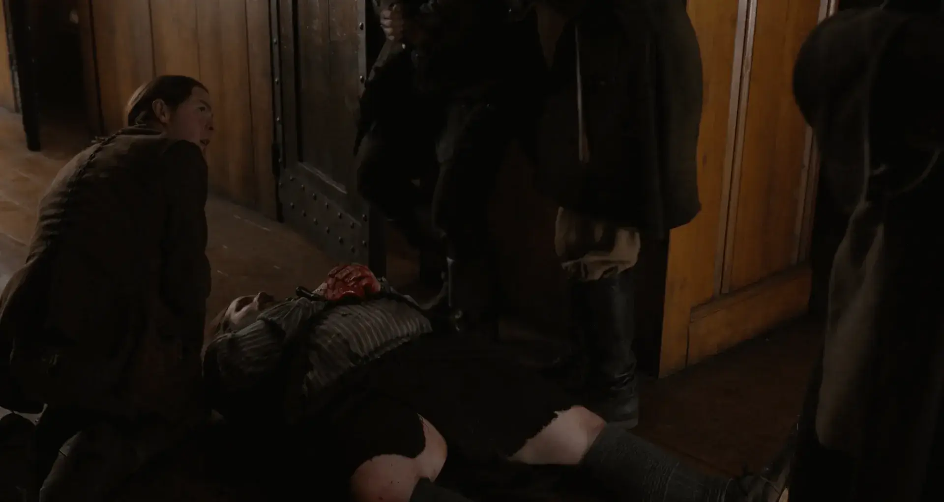 Тем временем, к Клэр за помощью обращается обеспокоенная женщина, чей муж испытывает невообразимую боль. Она пыталась самостоятельно ему помочь ртутными таблетками и пусканием крови, однако все эти устаревшие способы не сработали.Когда Клэр его осматривала, мужчина уже был одной ногой в могиле, поэтому спасти пациента героиня не смогла. В этот момент она задумалась над тем, что ей бы не помешали лекарства и антибиотики, о которых в 18 веке ничего и не слышали. Понимая, что так она может изменить ход истории, а некоторые люди могут не родиться, войны не начнутся, восстаний не будет, а значит и отмены рабства – Клэр готова пойти на такой риск, чтобы обезопасить себя и своих близких.