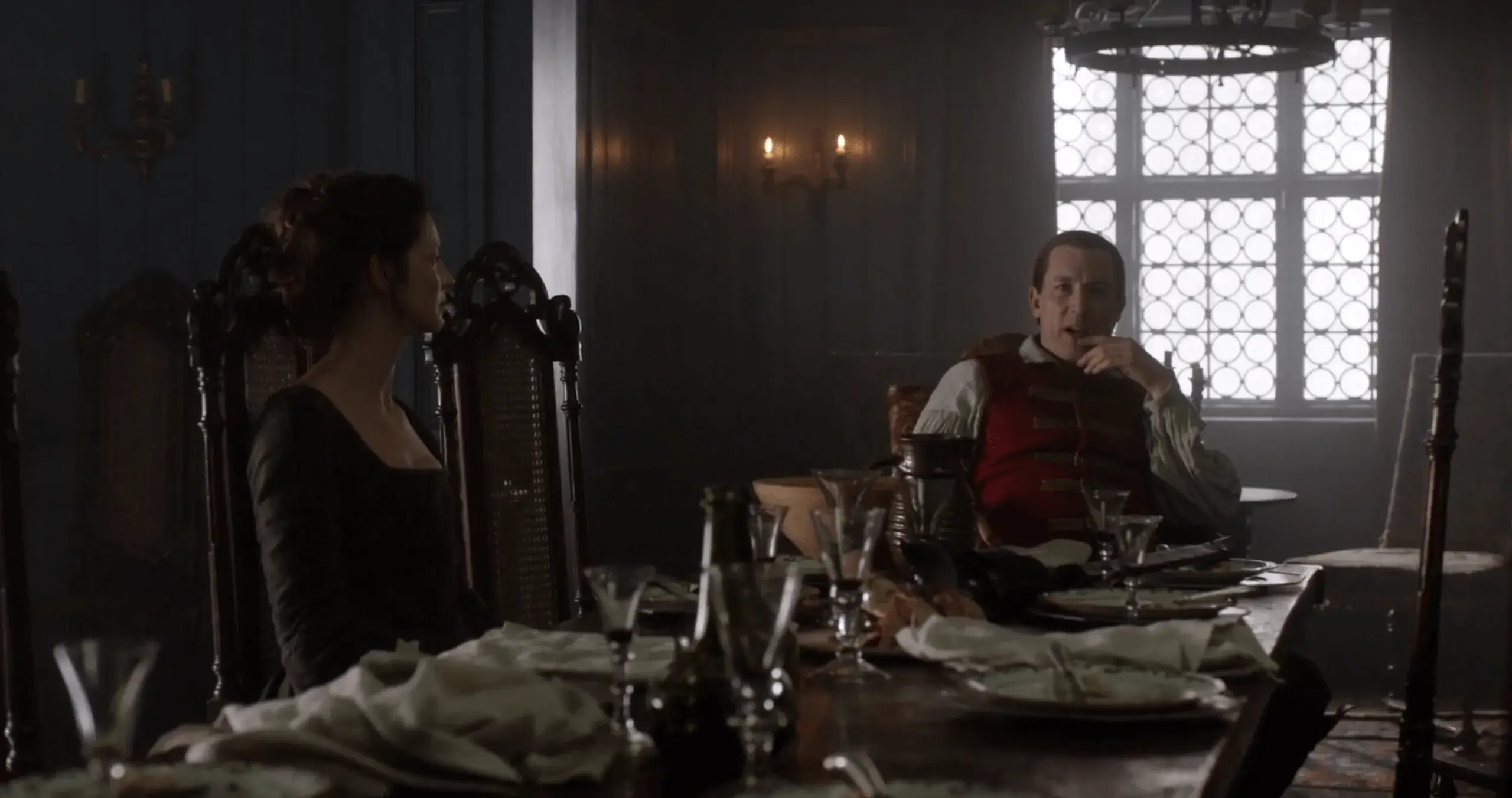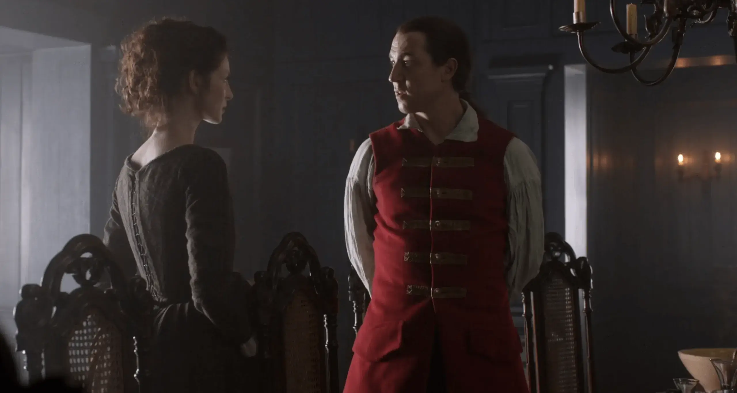 Через некоторое время Рэндал рассказывает о шрамах на спине Джейми. Оказывается, это именно он причинил ему те невыносимые страдания, память о которых осталась на теле Джейми в виде глубоких рубцов и шрамов. Он бил его до костей, пока Джейми не упал около столба чуть ли не замертво. Чем дольше продолжается разговор, тем больше Клэр испытывает ненависть и ярость по отношению к этому якобы соотечественнику (к тому же, он предок ее мужа Фрэнка).