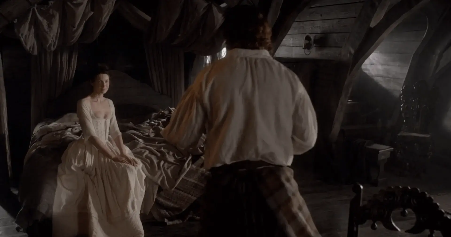 И вот настает час «Х», когда медлить уже нельзя. Будучи девственником, Джейми не знает, как подступиться к женщине, но Клэр всему его обучает. После одного раза пара не останавливается, и новобрачные становятся настоящими супругами.