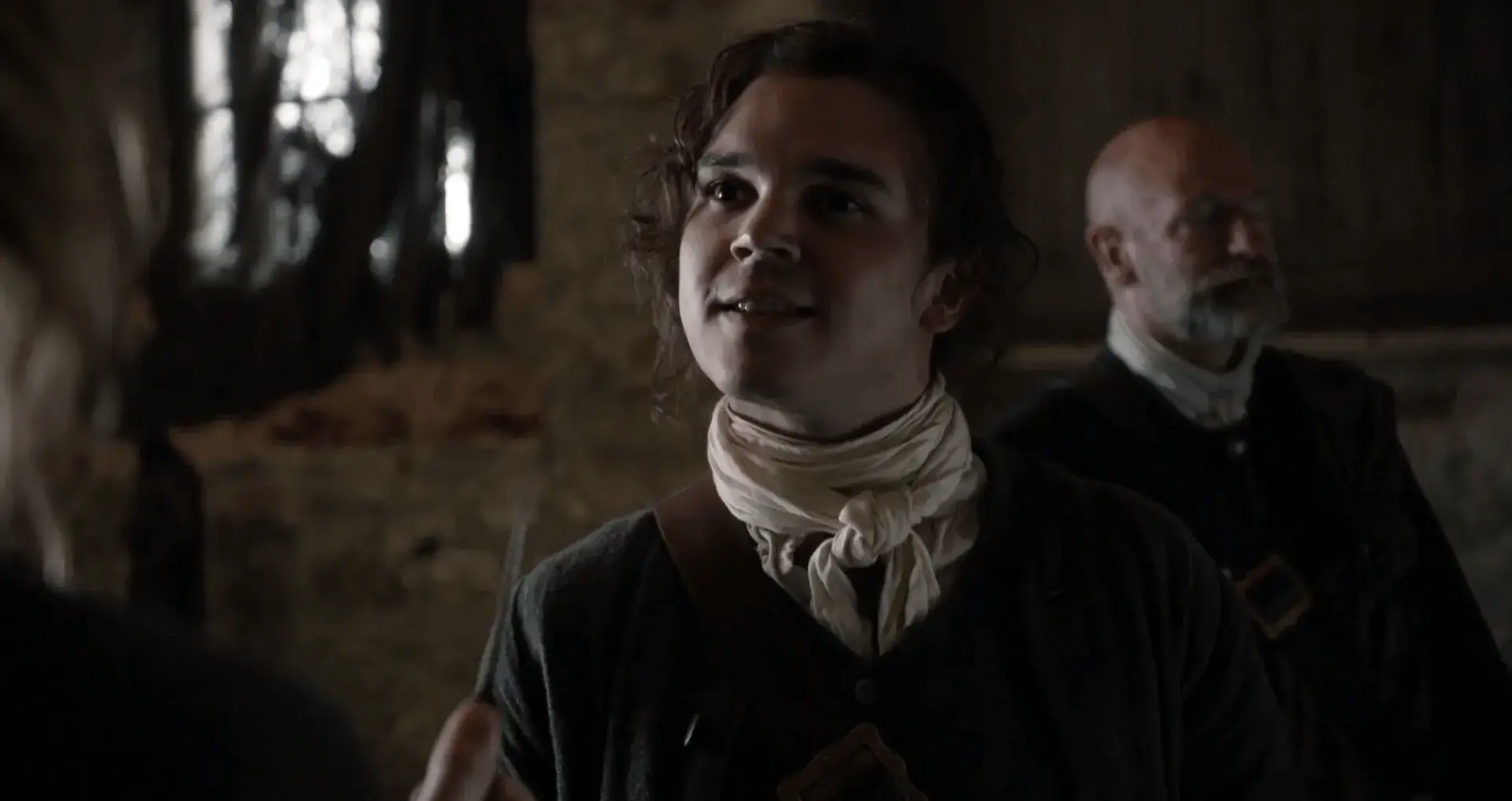 Между любовными утехами героиня узнает, почему он на самом деле на ней женился. Оказывается, Дугал рассказал ему о том, что Рэндал намерен убить Клэр, и единственный способ ее спасти – жениться. Тогда герой решил помочь чужестранке и согласился на этот брак, зная, что она уже была замужем. Джейми рассказывает девушке о том, как Нед помогал ему выбрать свадебное платье, а остальные приятели давали ему советы по первой брачной ночи.