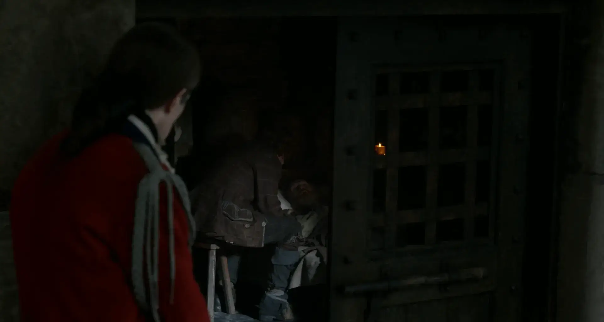 В скором времени в тюрьме меняется надсмотрщик, которым оказывается Джон. Дело в том, что он и есть тот повзрослевший юноша, которого Джейми пощадил много лет тому назад. Наверняка, именно из-за их общего прошлого Джон очень лояльно относится к повстанцу, поэтому в скором времени предлагает заключенному небольшую сделку. Джейми поможет ему перевести слова шотландского старика, который, как полагают англичане, знает ценную информацию о французском золоте, а Джон в благодарность за содействие выполнит просьбу Джейми и отыщет для раненого и больного Мертека лекарства и еду.
