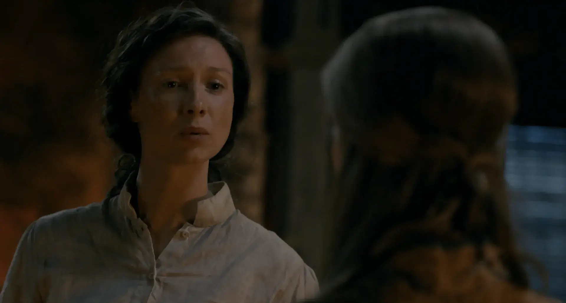 Тем временем Клэр продолжает искать Иана и забредает в дом Гейлис. Девушки мило беседует, но затем выясняется, что она затаила злость на чужестранку. Она уверена, что Клэр появилась не просто так и наверняка хочет сделать все возможное, чтобы помешать ей исполнить пророчество. Сама же героиня шокирована подобным предположением, ведь ей ничего не известно о пророчестве. Чтобы Гейлис ей поверила, она рассказывает о том, как вернулась в 20 век и родила дочь. Становится очевидно, что Брианна и есть тот самый двухсотлетний ребенок, которого нужно принести в жертву, дабы английская власть наконец-то сменилась. Вскоре она отправляет гостью отдыхать и запирает ее, а в это время Клэр видит в окно, как Иана уводят в неизвестном направлении. К счастью, из заточения ее вызволяет Джейми.